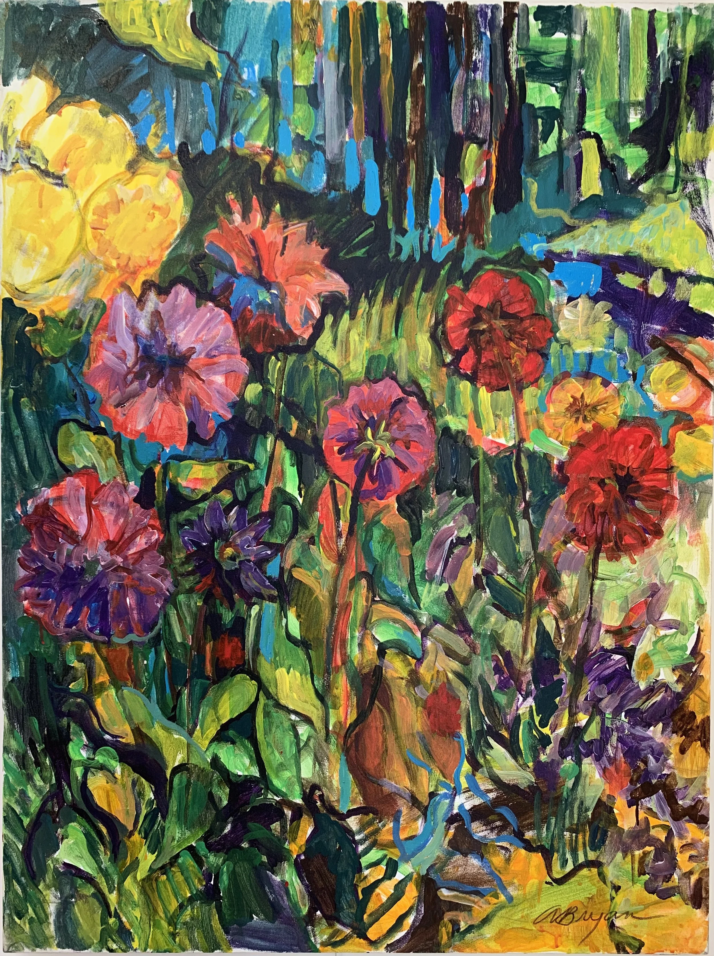 dahlias, 2015, a/c, 48 x 36 in